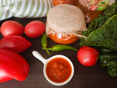 Приготовила помидоры перец через мясорубку на зиму. Очищенный от семян перец и репчатый лук измельчила блендером, нарезанные помидоры проварила на слабом огне до мягкости и затем протёрла через сито, чтобы удалить шкурку и семечки. В чашу мультиварки вылила томатную массу, добавила измельчённый перец , соль, сахар. Готовила в режиме "тушение" 20 минут( под давлением). Готовую заготовку разлила в подготовленные баночки и герметично закупорила. Зимой такой соус можно подавать к мясным и рыбным блюдам, добавлять при варке борщей и супов, тушении мяса. Очень вкусно! Спасибо автору за рецепт!