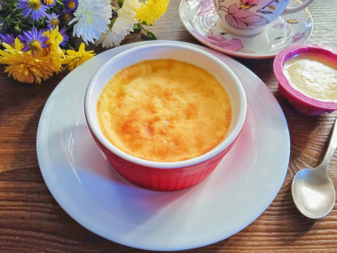 Очень хорошо зарумянится десерт в духовке, пахнет нежно и сладко. После полного остывания он застыл. А десерты из холодильника не застыли, остались жидкие.
