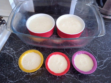 Получившуюся массу налила в две креманки и поставила в духовку по описанию в рецепте. Оставшуюся массу налила в силиконовые формочки и поставила в холодильник.
