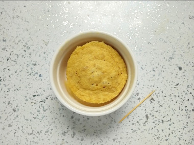 Готовьте кекс в микроволновке при мощности 800Вт 2-4 минуты или больше (ориентируйтесь на свою микроволновку). Готовность проверьте зубочисткой — она выйдет сухой из серединки.