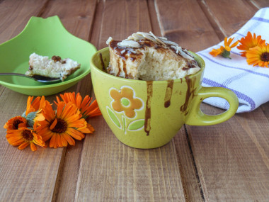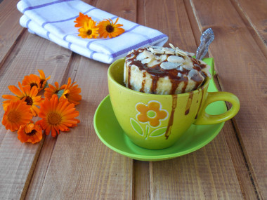 Аккуратно, чтобы не обжечься, достаньте кружку или чашки из микроволновки и сразу подавайте к столу. В дополнение вы можете подать мороженое, взбитые сливки или шоколадный соус. Приятного аппетита!