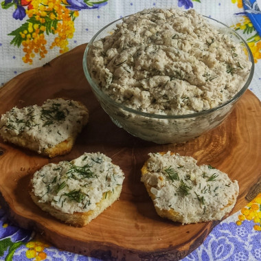 зелень укропа.Получился нежный и очень вкусный паштет. А в сочетании с поджаренным кусочком батона вообще супер!