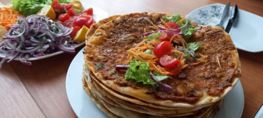 Одно из любимых блюд турецкой кухни! Тонкая лепешка с очень вкусной, пряной и ароматной начинкой из фарша. Отличное сочетание...
