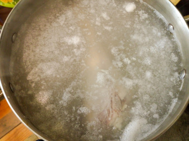 Как варить суп из голени индейки? Подготовьте все необходимые ингредиенты. Если голень замороженная, то заранее вытащите её из морозильной камеры и оставьте при комнатной температуре на несколько часов, чтобы она оттаяла. Овощи - лук, морковь и картофель, очистите от кожуры и ополосните в проточной воде от загрязнений.