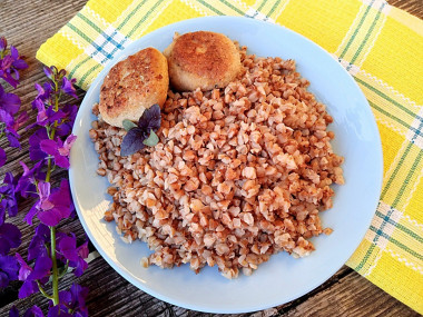 На гарнир приготовила гречку в мультиварке -скороварке. Чтобы гречка готовилась под давлением вместо режима "крупы" мне пришлось воспользоваться режимом " плов", время- 10 минут. За это время гречка отлично приготовилась, получилась мягкой и рассыпчатой, а вода полностью впиталась в крупу. Вот что значит правильные пропорции)). Спасибо за рецепт, Юлия М!