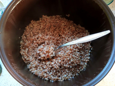 Спустя указанное время вы услышите звуковой сигнал, оповещающий о том, что каша готова. Вся жидкость успешно впиталась в гречку.