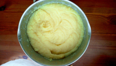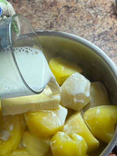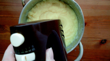 Если сначала перетолочь всё толкушкой с дырочками, а потом взбить венчиком на максимальных оборотах около минуты, получается просто восхитительно!!!! Очень лёгкая пюрешка получилась, невесомая, готовим только так!