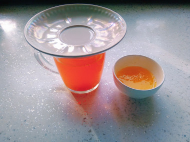 Такой чай я еще не пробовала, интересно было узнать какой он на вкус. Вообще на нашем сайте можно найти множество необычный и интересный рецептов) У меня не было корня имбиря, но был свежий порошок, купила для пряников на новый год. В рецепте он указан в чайных ложках, поэтому решила заварить порошок. Сделала половину порции на пробу. Заварила имбирь и куркуму, накрыла блюдцем и настаивала десять минут. За это время порошок осел на дно, а напиток стал насыщенно желтого цвета. Перелила его аккуратно в чашку так, чтобы осадок не задеть. Сначала попробовала без меда. На вкус очень пряно и остро) С медом вкус становится более мягким и сладковатым. Такой чай нужно пить, когда пришел с мороза и срочно нужно согреться, тем более чай заваривается быстро. Детям такой напиток не предложу, конечно, а вот муж мой с удовольствием продегустировал чай.