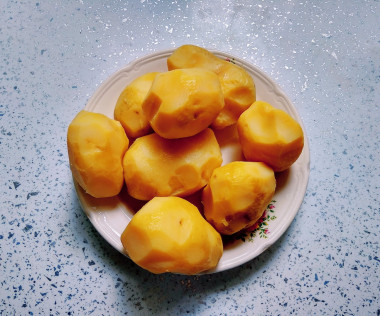 После варки сразу опустите горячий картофель в миску с ледяной водой на 10-15 секунд. Кожура потрескается и снимется чулком легким движением руки.