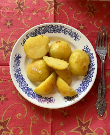 Я с удовольствием повернула время вспять и приготовила картошечку по рецепту 19 века. Правда, я внесла небольшую коррективу: сначала обжарила клубни на растительном масле, а затем добавила в сковороду сливочное и продолжила жарить до румяной корочки. Получилась отличная золотистая румяная картошечка с поджаренной корочкой. Очень хороший гарнир, который можно просто подать с овощами. Со специями я решила не экспериментировать, использовала, как и автор, только соль. Мне кажется, картофель и так получается очень вкусным, и забивать его специями не стоит.
