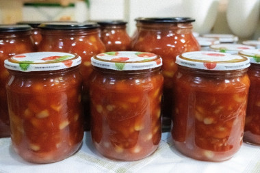 Закрыла в этом году впервые — и теперь жалею, что мало банок сделала! Фасоль с помидорами и перцем в томатной заливке получилась нежной, а помидоры дали приятную кислинку. Спасибо за рецепт.