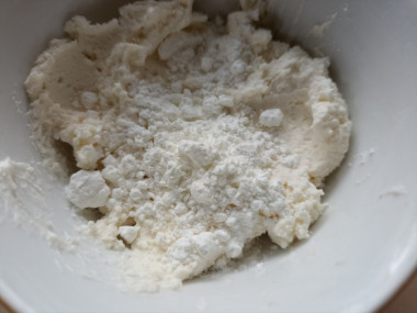 В отдельной емкости смешайте творог, сахарную пудру, яйцо и крахмал. Не забудьте, что яйца нужно предварительно мыть с помощью специальных средств.