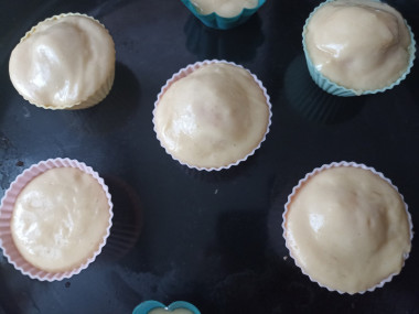 Из указанного количества продуктов получается 6 кексов. Я использовала силиконовую форму для кексов размером 6,5х2,5 см каждый.
