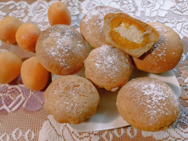 К чаю испекла кексы с начинкой в формочках Улыбка Лета. Абрикосы использовала свежие. Для начинки взяла готовую сладкую творожную массу, яйцо в нее добавлять не стала, добавила только немного крахмала. Тесто сделала по рецепту. Получились оригинальные, вкусные кексы. Спасибо автору за рецепт!