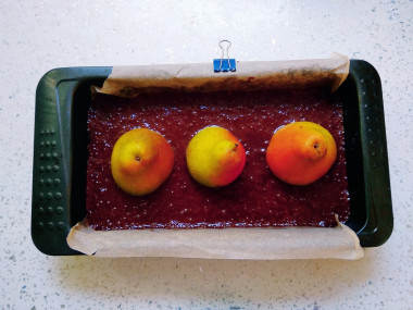 Выложите тесто в смазанную маслом и посыпанную мукой прямоугольную форму для кекса . У меня размер формы 30×10 сантиметров. Груши вдавите в тесто на одинаковом расстоянии друг от друга. Поставьте кекс в разогретую до 180°С духовку на 40-45 минут.