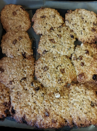 Очень вкусные печенья! Пришлось отказаться от изюма, так как сын его не ест. Заменила его сахарозаменителем. Очень вкусно получилось.
