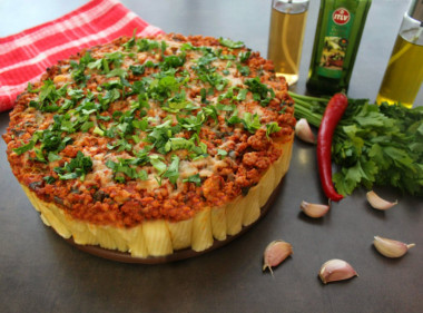 Очень интересное блюдо! На вкус как лазанья, на вид как торт. Единственное, мне не удалось нарезать его на куски, не развалив при этом уложенные макароны. Но это не важно, главное, что это вкусно!