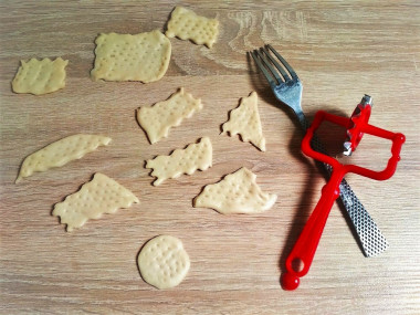 Разрежьте фигурным или обычным ножом на квадратики. Размер делайте по своему усмотрению. У меня примерно 2х2 см. Наколите каждый крекер вилкой в нескольких местах, чтобы они равномерно пропеклись и были хрустящими. Для выпекания подойдет стандартный большой противень от вашей духовки. Перенесите на него пергамент с тестом. Поставьте в разогретую до 180 градусов духовку и выпекайте до легкого румянца примерно 15 минут. Точное время определяйте по духовке.