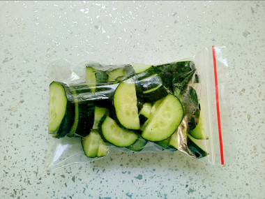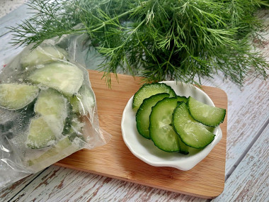 Никогда не задавалась вопросом как заморозить огурцы на зиму свежими, но случайно увидела этот рецепт и решила попробовать. Огурцов сейчас много, можно и заморозить на потом. Взяла пару огурчиков, помыла, обсушила и нарезала дольками. Замораживала в небольших пакетиках и зип-замочком. В один пакетик вошел один нарезанный огурец. После двух суток в морозилке решила проверить что получится после размораживания. Огуречные дольки оттаивали при комнатной температуре. Выводы следующие: огурцы остаются свежими, но при этом выделяется много сока и сами дольки становятся немного вялыми. Если обсушить, то можно использовать в салат. Но я придумала другое применение. Я буду их добавлять в рагу, а также тушить. Недавно узнала как готовить тушеные огурцы, теперь буду и зимой творить эту вкусноту) Однозначно заморожу ещё огурцов, чтобы на всю зиму хватило!
