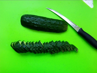 Перед тем, как добавлять огурцы в салат, освободите их от упаковки и дайте полежать несколько минут при комнатной температуре. Время разморозки будет зависеть от толщины пласта. Чем тоньше пласт, тем быстрее овощи будут готовы к работе.