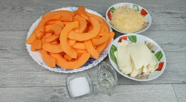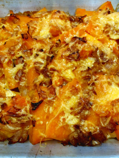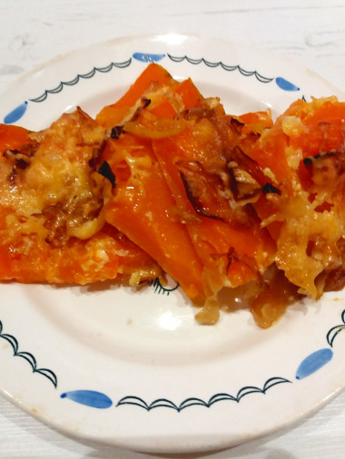 В классическом варианте ломтики тыквы обжариваются на сковороде. Но можно их запечь в духовке, чтобы тыква не впитывала слишком много масла. Так блюдо не будет слишком жирным. Подавайте тыкву с сыром непременно теплой, чтобы лучше проявлялся сырный вкус. Остывшую запеканку можно разогреть в микроволновке.