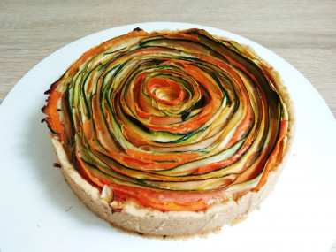 Отзыв 3: Очень красивый по исполнению и вкусный по составу пирог. Необычная, нетрадиционная форма укладки овощей привлекает и завораживает.