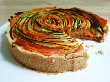 Я влюбилась в этот пёстрый пирог сразу, как только увидела его на фото! Долгое время не решалась приготовить, но потом даже специально съездила на рынок, чтобы именно для него купить кабачки разного цвета. Честно говоря, я от вкуса много не ожидала, просто захотелось сделать итальянский овощной пирог спиральный таким же красивым, как на фото. Но ошиблась, пирог оказался очень вкусным! Делала по рецепту, только не добавляла чеснок (вместо него с помидорами прожарила луковицу) и сверху покрыла овощи не маслом, а взбитым яйцом. Это чудо-пирог! Овощи (кабачки и морковь) остаются тверденькими, вместе с тем достаточно приготовленными, начинка (томаты, сыр, специи) отлично гармонирует с овощами по вкусу, ну а рассыпчатая песочная основа добавляет не только изюминку во вкус, но и придает дополнительную сытность. Очень вкусно и очень красиво! Спасибо за интересный рецепт!