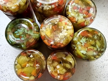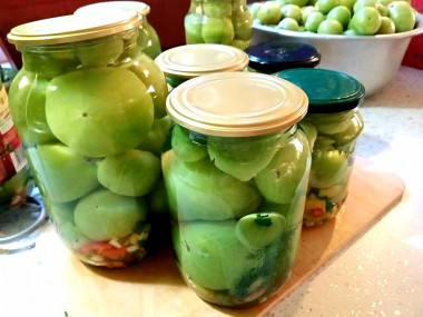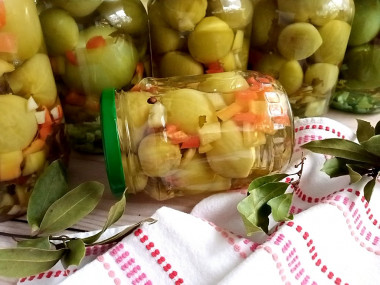 Сделала заготовку зеленые помидоры и болгарский перец на зиму. Количество продуктов брала на глазок. А вот рассол варила строго по рецепту, он вкусным получился, насыщенным!
