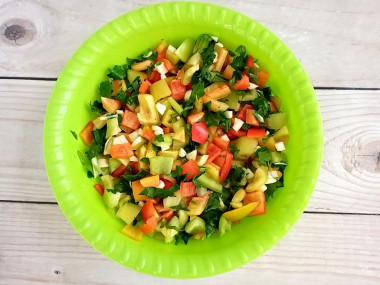 Перцы нарежьте максимально мелко(можно кубиками или тонкими полосками).