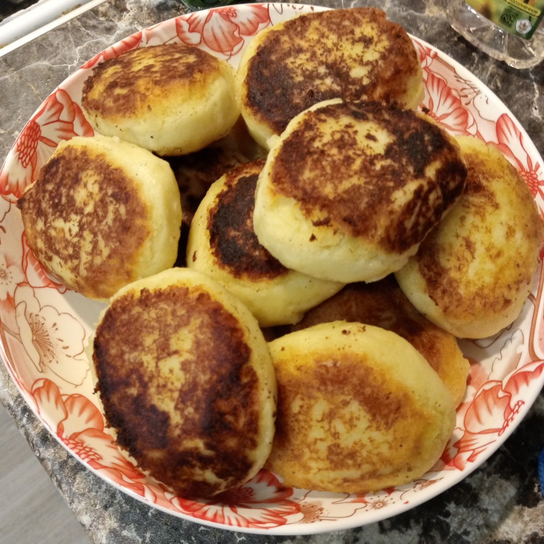 Предварительно смочив руки в воде берем необходимое количество толченой картошки на ладонь и формируем из нее лепешку нужного размера.