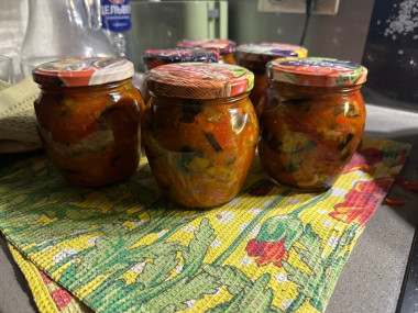 Впервые сделала заготовки с баклажанами и не прогадала! Да, долго из-за обжаривания овощей, но это ооооочень вкусно! Рекомендую!