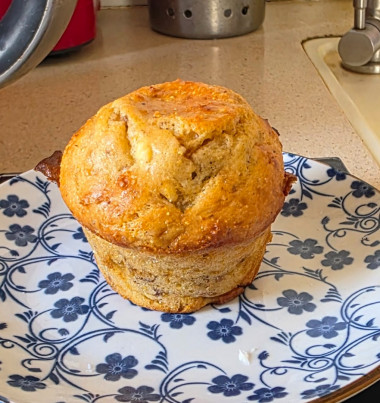 Кексы получаются малосладкие, пористые, мягкие, чуть суховатые. Сладость можно корректировать путем добавления большего или меньшего количества изюма. Если сухофрукты не используете, возьмите сахарозаменитель по вкусу.