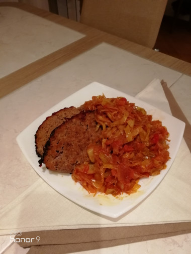 . Паралельно приготовила тушёную капустку с овощами и поужинала