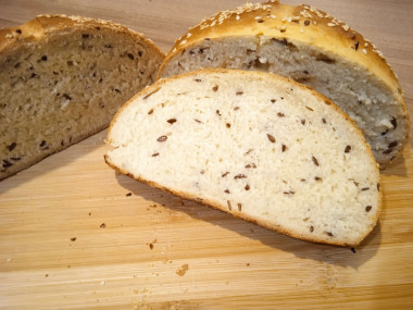 Пекла такой хлеб впервые, все делала по рецепту. От себя добавила только льняное семя. Рецепт хороший, простой, все описано правильно и доступно. С тестом работать приятно. Я, как и автор, не пользовалась при замесе кухонными помощниками. Всё-таки дрожжевое тесто любит руки. Замешивала не 20 минут, а 10. Для меня это стандартное время замеса, 7-10 минут. Хлебушек получился аппетитно-соблазнительный, с хрустящей корочкой. Единственное, что нам не хватило - это соли. В следующий раз добавлю немного побольше, на наш вкус.
