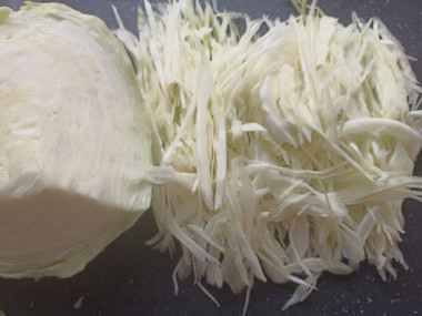 Довольно мелко нашинкуйте всю капусту на специальной терке-шинковке или ножом вручную.