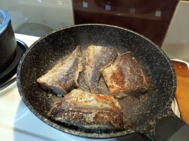 Будьте очень аккуратны, когда переворачиваете рыбу на другую сторону - используйте для этого широкую лопатку. Мясо очень деликатное, его волокна легко разрываются.