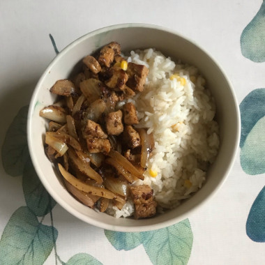Перед подачей мясо с луком перемешайте и слегка прогрейте на той же сковороде. Подавайте с картофельным пюре, макаронами, рисом или гречкой. Приятного аппетита!