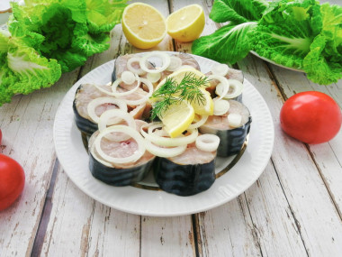Увидев в магазине замороженную скумбрию, решила купить ее, чтобы приготовить по рецепту скумбрия в рассоле кусочками.