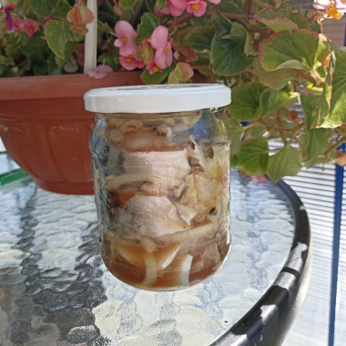 Рассол довела до кипения, подержала на огне минуты две и сняла с плиты. Дала рассолу остыть, а затем залила им рыбу.