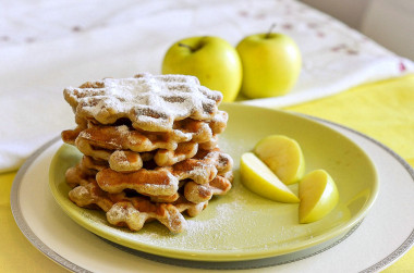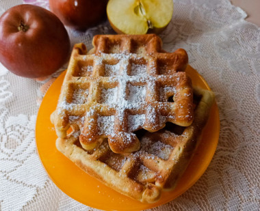 Я очень люблю яблочную выпечку, поэтому решила испечь яблочные вафли в вафельнице. На мой вкус яблоки для вафель лучше выбирать сладкие. Тесто замешивается очень быстро, готовить их действительно легко и просто: наливаешь тесто в вафельницу и через несколько минут всё готово! Спасибо автору!