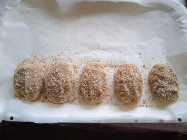 Противень застелите бумагой для выпечки и уложите на него котлеты.