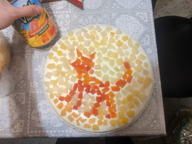 Тортик обалденный получился. Немного не поняла, что значит "распустить на огне желатин", в итоге использовала 12 грамм порошкового желатина и развела в небольшом количестве воды и довела до кипения. Крем загустел идеально (не твёрдый и не жидкий). Украшала тропическим миксом. Так как у нас любят котиков, украшение получилось такое)))