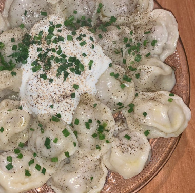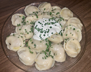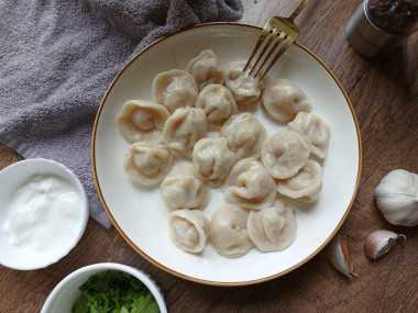 Выложите приготовленные пельмени на тарелку и подавайте к столу со сметаной или маслом.