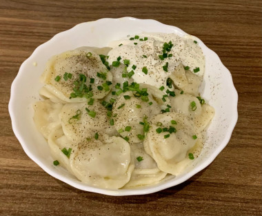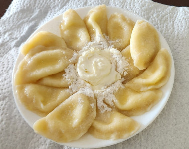Привет! Это снова я:) На этот раз я использовала этот великолепный рецепт теста, но не для пельменей, а для вареников с творогом и скажу вам, что оно отлично подходит для них. Весь сок содержимого будь-то вареников или пельменей остаётся запечатаным внутри, тесто очень податливое, пластичное, особо не липнет (насколько это может делать тесто) ни к поверхностям, ни к рукам. Вареники при варке и периодическом помешивании не разрываются в воде и не слипаются. Ах да, моя начинка: на 500 г спресованного творога взяла 1 желток, 2 ст.л. сахара, пол пакетика ванильного сахара (не путать с ванилином), щепотку соли. Свежие незамороженные вареники варить после всплытия не больше 3 минут! Подавала со сметаной и сахарной пудрой.