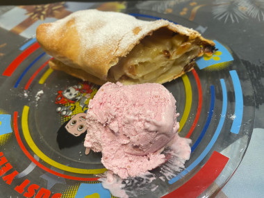 Теплый штрудель с шариком холодного мороженого — невероятное наслаждение!