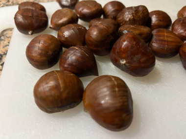 Отзыв 1: Оригинальное блюдо, не распространённое в наших краях. Выглядят каштаны аппетитно. Приготовлено и сфотографировано очень хорошо.
