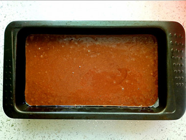 Продолжая перемешивать шоколадную массу, влейте кипяток и мешайте до однородности. Тесто получается довольно жидким, но так и должно быть. О секретах приготовления бисквита вы можете прочесть в статье по ссылке в конце рецепта.