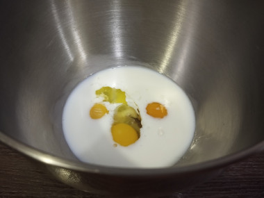 Яйца помойте, даже если на первый взгляд они кажутся чистыми. Достаньте их из холодильника заранее, чтобы они были комнатной температуры, тогда бисквит получится более пышным. В другую миску налейте молоко, комнатной температуры, и разбейте в него яйца.