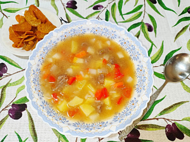 Приготовила на обед суп мастава по-узбекски. Всё делала по рецепту, только вместо говядины баранину использовала. Получилось очень вкусно! Все довольны, особенно муж