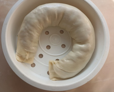 Готовить ханум можно в пароварке, мантоварке, мультиварке, даже специальная вставка в кастрюлю для приготовления на пару подойдет. Обязательно смажьте контейнер для приготовления растительным маслом, чтобы рулет не прилип. Уложите в него ханум, завернув его по кругу, чтобы он уместился.
